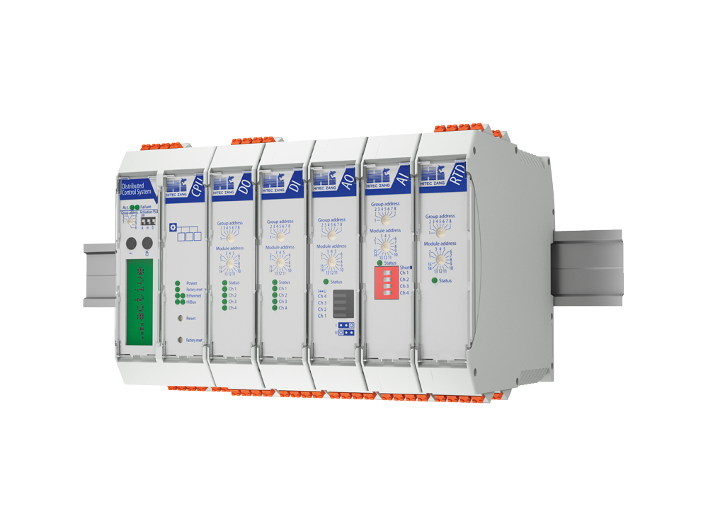 | CPU-Modul | DC-CPU | Steuerung, Regelung, Kommunikation | Ethernet, HiBus, Display | Doppelmodul mit Watchdog-CPU, Lastabwurf, unabhängige Aktivierungsspannung | Dezentrale I/O-Stationen | |